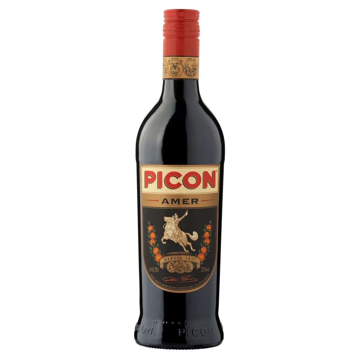 Picon est une liqueur amère française découverte par Gaétan Picon. Gaétan, né en 1809, a reçu sa formation dans la distillerie d’Aix-en-Provence. Il a découvert le Picon en 1837 pendant son service dans l’armée française en Algérie. Il cherchait alors lui-même un médicament contre la malaria qu’il avait contractée. C’est devenu un produit miracle car ça marchait. Ses officiers avaient également découvert sa boisson et il a pu la produire pour les troupes françaises. Après son service dans l’armée, il a fondé à Marseille une grande distillerie et a renommé son produit Amer Picon. « Amer » équivaut à « bitter ». Picon Amer est fabriqué à base d’oranges, de gentiane et de cinchonine. Cela donne un goût aigre-doux et un bouquet légèrement épicé. Picon peut être bu pur comme apéritif et est excellent à mélanger avec de la bière ou du vin blanc.